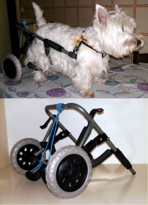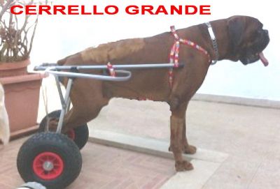 - Carrello per cani e/o gatti con handicap, affetti da paralisi o da immobilizzazione temporanea della parte posteriore o che hanno bisogno di riabilitazione. Il carrello è costruito per il tuo cane con le misure che tu m’invierai. Il suo peso complessivo del carrellino varia da 1 kg a 4 kg, dipende dal peso del cane che deve sostenere. Se abiti nelle vicinanze di Salerno possiamo incontrarci, così potrò prendere personalmente le misure al tuo cane e con un apposito carrellino, “passepartout regolabile” sarà anche possibile far fare subito, al tuo amico a 4 zampe, una bella passeggiata di prova per vedere come reagisce alla novità. Le misure che devi inviarmi sono: 1) Circonferenza del torace. 2) Distanza tra le zampe anteriori e posteriori. 3) Altezza sotto la coda. 4) Larghezza della coscia. 5) Larghezza della spalla. 8) Peso I prezzi variano secondo il peso del cane: Da 3 kg a 10 kg EURO 150 Da 11 kg a 20 kg 175 Da 21 kg a 30 kg 200