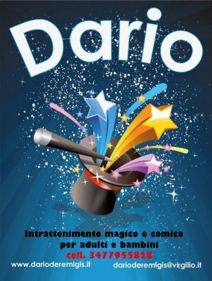 - 3477955828 è il numero, Dario è il nome, il risultato è... MAGIA Mago Dario, la vera magia per bambini! Trasforma la tua festa in un magico show!!! Feste di compleanno, feste di fine anno, eventi speciali, LO SPETTACOLO GIUSTO PER OGNI OCCASIONE! Rendi la TUA festa unica ed indimenticabile con il Mago Dario spettacolo,animazione, musica e coloratissime sculture di palloncini! Affidati un professionista! Le mie garanzie sono i clienti super soddisfatti che raccomandano i miei servizi a conoscenti e amici. Mago Dario! Solo il meglio per i vostri bambini! Contattami per saperne di più! 3477955828 www.magodario.it