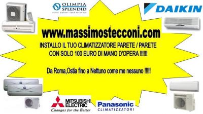 - WWW.MASSIMOSTECCONI.COM installo il tuo climatizzatore parete/parete con solo 100 euro di mano d'opera!!Sono serio e preparato.Mi reputo un professionista in questo campo.Uso sempre la pompa del vuoto!!!Se vuoi sapere tutto sul mio lavoro e , soprattutto le mie tariffe, guarda il mio portale e scopri come è facile fare un buon lavoro e risparmiare denaro!.......dimenticavo riparo pure i danni causati da installatori improvvisati ed estivi.Da Roma,Ostia fino a Nettuno come me nessuno!!! Un saluto Massimo Stecconi.com