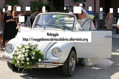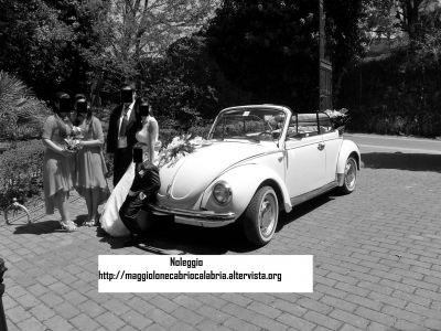 - Si offre per matrimoni, cerimonie ed eventi, sia estivi che invernali, splendido maggiolino/maggiolone cabrio bianco del 1975 in ottime condizioni, con interni in pelle nera, autoradio antica (dotata di lettore MP3), cappotta nera, ruote con fascia bianca e varie cromature. Il prezzo del servizio è molto CONVENIENTE e include tutte le spese compreso il carburante. Il maggiolone cabrio è visibile sempre su appuntamento per le province e dintorni di Crotone, Catanzaro, Cosenza, Vibo Valentia e Reggio Calabria. Per maggiori informazioni tel.327 6946973 oppure 0962 773392 oppure invia una mail a maggiolonecabrio75calabria@yahoo.it Per vedere altre foto del maggiolino visita il sito internet ad esso dedicato http://maggiolonecabriocalabria.altervista.org/