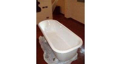- NOI NON SIAMO LEADER DEL MERCATO, SIAMO SOLO BRAVI ARTIGIANI DI VECCHIO STAMPO. Eccovi un esempio di recupero vasca in ghisa in stile Liberty, effettuata presso il nostro laboratorio, fino allo sballo del collo direttamente dal cliente. Vasca da bagno rovinata dal tempo e dagli acidi? NESSUN PROBLEMA!!! Siamo in grado di farla tornare NUOVA... RB e la RISMALTATURA La nostra azienda propone la RISMALTATURA dal 1972, che consiste nel rigenerare il vecchio smalto della vasca direttamente sul posto con una tecnica speciale, ma soprattutto con uno smalto creato ad hoc, non acquistabile normalmente in commercio. LE FASI DELL'APPLICAZIONE: 1) Pulizia mediante decapaggio. 2) Trattamento Antibatterico. 3) Riparazione/Ricostruzione della superficie scheggiata e corrosa dagli acidi. 4) Prima spruzzatura a caldo di isolante/aggrappante, che assicura una perfetta aderenza nel tempo. 5) Applicazione finale con il sistema termoriscaldato compresso poi nebulizzato a spruzzo mediante l'impiego di uno s