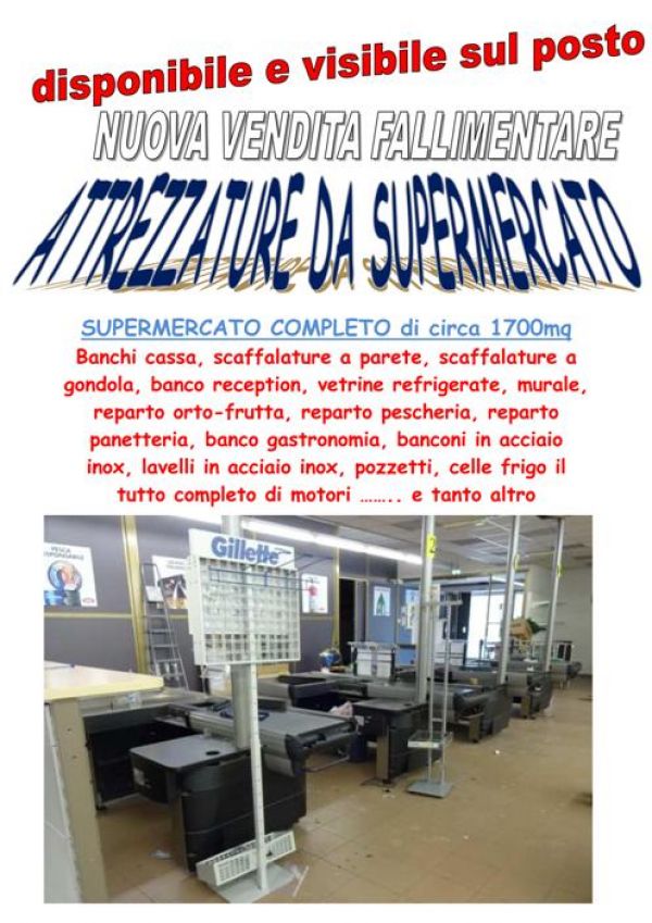 Vendita attrezzature e arredamento supermercato completo di circa 1700mq