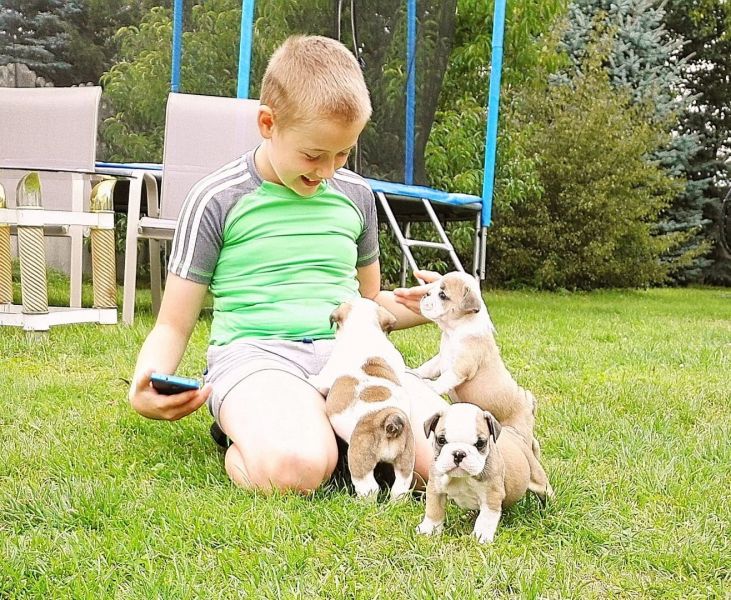 - Questi meravigliosi cuccioli di bulldog inglese originale di 2 mesi , vaccinati e sverminati con libretto sanitario, genitori assenti di qualsiasi tipo di malattia congenita,visibili a casa mia,nati a casa e cresciuti con amore, molto dolci e affettuosi.