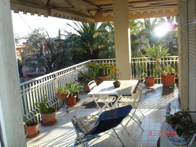 - APPARTAMENTO Mq 120 + 75 m2 terrazzi e giardinetto composto da: PIANO SECONDO di 3. ESPOSTO SUD - EST – NORD/EST N°1 Ingresso N°1 grande salone a SUD con finestra e portafinestra; + sala da pranzo (ripristinabile a terza comoda camera da letto singola) con porta-finestra su ampio balcone vivibile esposto a sud-est) N° 1 cucina abitabile con balcone esposto a est n° 2 camere matrimoniali affacciate su terrazzo coperto e giardinetto di proprietà esposto a nord; n° 2 bagni confortevoli affacciati su giardino condominiale esposto est; Totale terrazzi e giardinetto mq.75 immerso nel verde e parziale vista mare. N. 1 ampia CANTINA N° 1 grande BOX N° 1 POSTO AUTO scoperto di proprietà. Spese condominiali Eur 3000,00/anno Tel 329 3120404 Sig.Francesco RICHIESTA EURO 670.000,00 FINITURE DI LUSSO: -Pavimentato in Parquette ottimo stato -Infissi in legno con doppi vetri ottimo stato -Tapparelle in alluminio motorizzate elettriche -Riscaldamento e acqua calda autonomo impianto nuovo!