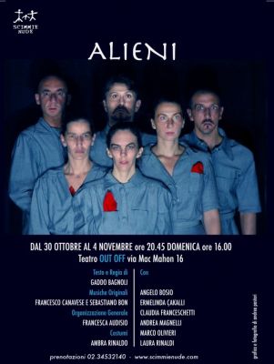- ALIENI 30 ottobre – 4 novembre Teatro Out Off Milano, ottobre 2012 – allo scadere dei 10 anni di attività, le Scimmie Nude tornano con un’importante produzione corale e vari appuntamenti disseminati per la stagione milanese, per festeggiare la lunga e difficile strada di una compagnia di ricerca, sempre tesa allo studio e alla sperimentazione più curiosi. Alieni, in scena all’Out Off dal 30 ottobre al 4 novembre, è uno spettacolo con 6 attori, che tenta di indagare il rapporto tra l’individuo e la società, attraverso un linguaggio del tutto originale. Dopo la Trilogia d’Indagine sull’uomo e sulla sua intimità, che ha impegnato la compagnia per quattro anni, il nuovo progetto ha visto la luce a maggio 2012, ed è stato presentato sotto forma di lavoro non compiuto al Teatro della Contraddizione. La produzione è ora pronta per andare in scena, e le Scimmie Nude affrontano per la prima volta il problema del rapporto tra gli individui, tra il singolo e gli altri. Cosa succede all’uomo, quando si mette in relazione con gli altri? Quali sono le sue reazioni? Come struttura la sua vita? Il progetto di ricerca Alieni, tenta di indagare questo conflitto, esplorando la capacità dell’uomo di adattarsi (o meno) a quello che la società gli impone. Questa indagine viene condotta con gli strumenti tipici della direzione artistica Scimmie Nude, che da anni, attraverso il proprio studio teatrale, analizza l’Uomo per studiarne il comportamento, la sua reattività animale e i rapporti reciproci con l’ambiente esterno. I sei personaggi senza nome di Alieni, avvinti e sperduti in un coro metropolitano, cominciano da una sensazione di distacco individuale dagli altri. L’essere sociale e l’essere individuale sono due realtà ben distinte ma interconnesse tra loro. I personaggi si cercano, si inseguono, ma ad un tempo si evitano nell'indifferenza e nella crudeltà più assolute. Essi si stringono in cori d'insieme e poi si abbandonano all'isolamento e alla solitudine. Attraverso i loro intrecci scenici, vivono il loro perenne stato di disequilibrio sociale e personale. Per non sentirsi un semplice ingranaggio di una società nella quale non si rispecchiano mai fino in fondo e per garantire un'esistenza riconoscibile a se stessi e agli altri, vogliono differenziarsi e mettersi in evidenza anche in maniera esagerata, estrema e bizzarra. Attraverso questo comportamento riescono a mantenersi 'a galla' con una certa autostima. “In questa ricerca sta maturando il pensiero che l'esistenza umana nella sua pratica si consumi in questa eterna lotta tra l'individualità e la socialità – dice Gaddo Bagnoli, regista e autore dello spettacolo - L’essere per sé e l'essere per gli altri dipendono reciprocamente l'uno dall'altro in quanto scopo e mezzo. Il desiderio dell’uomo di piacere al mondo e di essere stimato è fondamentale per potersi riconoscere.” I personaggi di Alieni hanno il problema di fondersi e allo stesso tempo di distinguersi dal proprio gruppo di appartenenza sia esso intimo (famiglia e amici) o sociale (lavoro, religione, sport, eccetera). L’idea è che la conflittualità e l'inconciliabilità di tali esigenze non escluda il loro reciproco stretto legame e che in ognuna di esse sia insita la condizione dell'esistenza dell'altra. Ancora una volta solo l'amore e l'accettazione possono rappresentare una via d'uscita da questa antica lotta di affermazione e di libertà, che oggi prende sempre di più i contorni di un egoismo rabbioso, cieco e disperato. ALIENI Teatro Out Off, via Mac Mahon 16, Milano 30 ottobre – 4 novembre Ore 20.45, domenica ore 16.00 Prenotel. 02.34532140 Prevendita: Intero: 18,00 Euro - costo prevendita e prenotazione 1,50 /1,00 Euro (salvo diverse indicazioni per specifici spettacoli) Riduzioni: 12 euro (under 25); 9 Euro (over 60) (Convenzione con il Comune di Milano). Lo spettacolo è inserito nell’abbonamento. ALIENI TESTO E REGIA Gaddo Bagnoli PRODUZIONE Scimmie Nude ATTORI Angelo Bosio, Ermelinda Ҫakalli, Claudia Franceschetti, Andrea Magnelli, Marco Olivieri, Laura Rinaldi MUSICHE Sebastiano Bon e Francesco Canavese DIREZIONE ORGANIZZATIVA e UFFICIO STAMPA Francesca Audisio, con la collaborazione di Clara Galbini