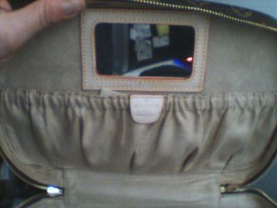 - QUESTO ELEGANTE BEAUTY CASE IN TELA MONOGRAM PRESENTA UNA CHIUSURA CON CERNIERA E SI PORTA A TRACOLLA O A MANO. APERTO RIVELA UNO SPECCHIO, UNA TASCA CON ZIPE E SUPPORTI PER FLACONI MISURE: 32X20X21 CM, PARTI METALLICHE IN OTTONE DORATO, CHIUSURA CON DOPPIA CERNIERA, SPECCHIO E TASCA CON ELASTICO, SUPPORTI IN VACCHETTA NATURALE PER SPAZZOLA E FLACONI, MANICO IN VACCHETTA NATURALE, TRACOLLA REGOLABILE IN VACCHETTANATURALE AMOVIBILE NUOVO CON CERTIFICATO ANNESSO E DUSTER CONTENITITVA