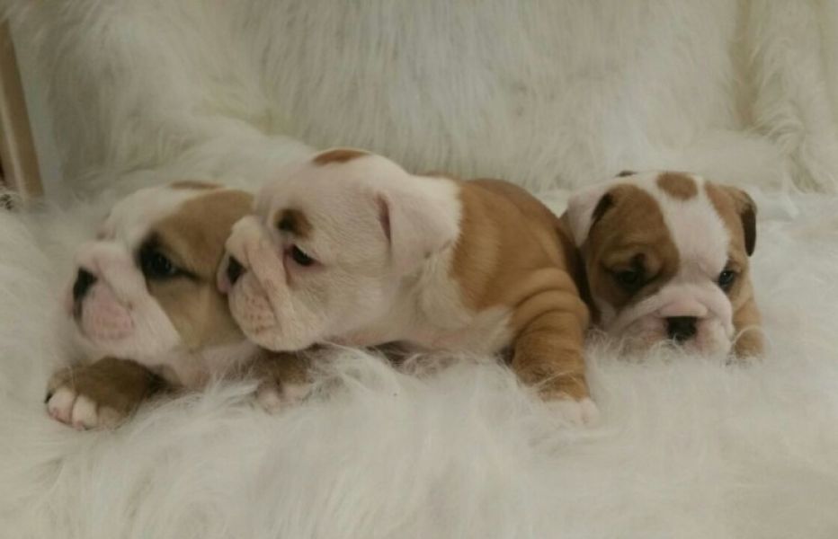 • Bella Bulldog inglese cuccioli Carini e belle Bulldog inglese cuccioli. Questi cani sono famiglia sollevato e carta addestrati. Disponibile per la visualizzazione. Essi hanno avuto i loro primi colpi e micro-scheggiato. Contattarci più informazioni.