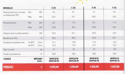 - Caldaie murali a gas FER EASYTECH con produzione di acqua calda istantanea,elettroniche a ionizzazione.Installazione anche per esterno in luogo parzialmente protetto.Predisposizione impianti solari.mod.C 32 camera aperta,tiraggio naturale euro 800,mod.F 32 camera stagna,tiraggio forzato euro 830+ 50 euro per consegna a domicilio tramite corriere, con fattura.garanzia con centri assistenza in tutta Italia Sito web: www.climatizzatoricaldaie.com