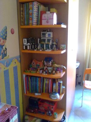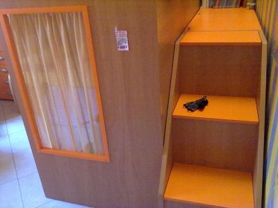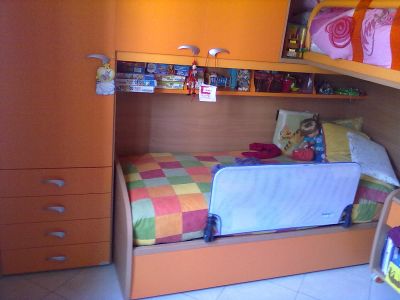 - Vendo cameretta,COME NUOVA, dotata di 3 posti letto con 2 letti a castello a cui si arriva con gradini box porta tutto e ringherine sicure e un letto scorrevole. N. 1 armadio a ponte con 4 cassettiere, n. 1 comodino con cassetto dotato di rotelle . N. 1 armadio a 2 ante cm. 110 x 2.80 con 7 mensole corredate . N. 2 mensole cm. 90 x 30 ,N. 2 mensole cm. 70 x35 . €. 1.000,00. Tel. 335/6695395 dimensioni mt. 2.15 letto superiore, gradini compresi x mt. 3.15 letto sotto, compreso armadio.