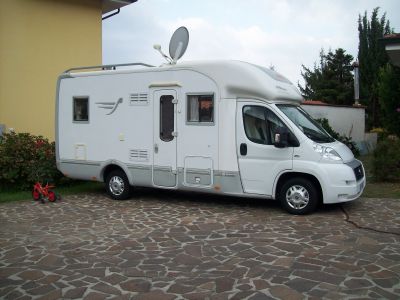 - camper in ottime condizioni unico proprietario super accessoriato radio cd abs airbag clima in gabina letto matrimoniale alla francese camera/ maatrimoniale piu letto matrimoniale bagno con due finestre cucina gas e elettrica con frigo a gas e elettrico garage x bike vernice speciale gomme speciali tv satelite x qualsiasi info tel luca 3923192592