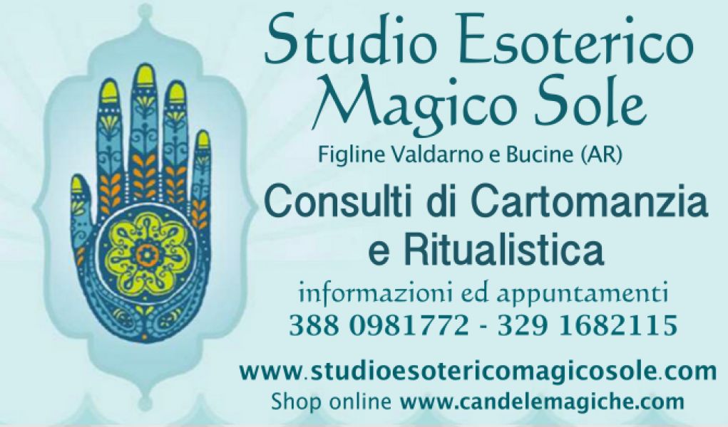 - Cartomante consulti di cartomanzia dal vivo cell 3291682115 Sono Marisa la cartomante dell’amore con oltre trent’anni di esperienza. sono specializzata in legamenti incantesimi magia d’amore ma opero con successo qualsiasi genere di rituali magico. Ricevo dal vivo a Bucine (AR) e Figline Valdarno per info 3291682115 Per consulti telefonici visita il sito www.ritualiecartomanziadellamore.org (NO consulti gratuiti). Shop online www.candelemagiche.com