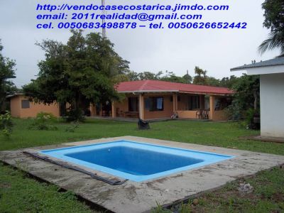 - Lotto mq 1750 Casa mq 320 Camere 3 Bagni 1 Cucina Salotto Studio Piscina esistente con jacuzzi da ripristinare Casetta appartamento indipendente mq 45 con bagno Casetta disimpegno per attrezzi Giardino mq 1370 Entrata con cancello automatico Alberi da frutta Pozzo privato per irrigazione Garage coperto per due macchine Ubicata a solo 3 minuti dal centro di Liberia, vicinanza Ospedale, zona molto tranquilla, tutta la proprietà e circondata da alte mura, la proprietà è particolarmente interessante perché si possono costruire altri 4/6 appartamenti da affittare molto ricercati nella zona da medici ed infermieri ospedalieri Valore totale: $ 280.000,00 trattabili € 224.000 http://vendocasecostarica.jimdo.com email: 2011realidad@gmail.com 00506 -83498878 – 00506 -87221592