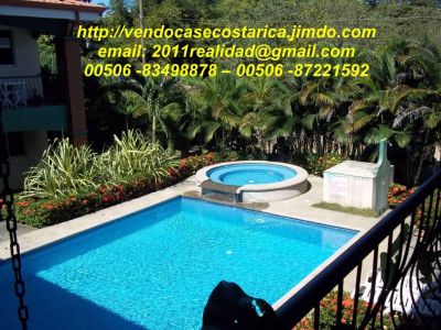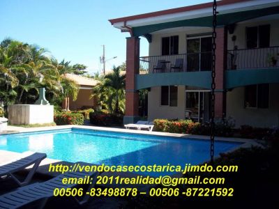 - Casa mq. 40 completamente ammobiliata Camere da letto 1 Bagni 1 Cucina abitabile Salotto Balcone aria condizionata Acqua calda Tutti i servizi: luce, acqua, telefono, internet Valore $ 60.000,00 ¢ 30.000.000 € 44.0000,00 Appartamento in condominio al primo piano, con parcheggio privato e custodito, guardia 24 ore, piscina condominiale con ampio giardino, servizio di lavanderia condominiale, solo 800 mt dalla spiaggia. Sono disponibili al piano terra, nr. 3 appartamenti gemelli, stesso valore. http://vendocasecostarica.jimdo.com email: 2011realidad@gmail.com 00506 -83498878 – 00506 -87221592
