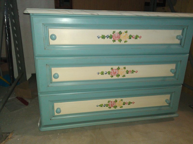 - Cassettiera con tre cassetti azzurra con decorazioni nuova in legno massiccio.€ 700 Cassettiera di colore giallo con decorazioni nuova in legno massiccio.€800
