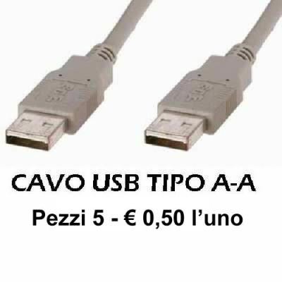 - CAVO USB TIPO A-A € 0,50 l'uno 5 disponibili Vendo, dopo aver ceduto il negozio, tutto ciò che mi è rimasto. Alcune cose nuove e altre usate lista completa qui: [URL]http://www.tibbi.it/sito/vendita.html[/URL] per contatti: bartonab@libero.it oppure : 338.99.15.579 G U A R D A -- L E -- A L T R E -- M I E -- O F F E R T E ! ! !