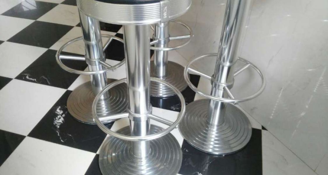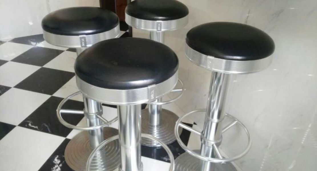 - Cedo quattro sgabelli Billy Ycami pari a nuovo, alti cm 85 , in solida struttura in alluminio e inserti in acciaio inox, con poggia piedi, seduta comoda e morbida in vera pelle colore nero.Base con piombatura sottostante per la massima stabilità! Più eventuali spese di spedizione