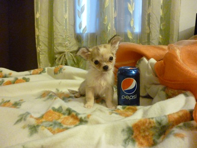 - Chihuahua toy cucciola vendo come da foto vendo nata il 15 11 2013 e pesa 500 gr e veramente piccola, bellissima in perfetta salute dal carattere stupendo affettuoso simpaticissima gioiosa, allevata in casa completa di vaccinazioni libretto sanitario, per info 3474917587 non rispondo a email o sms