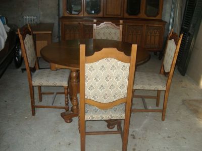 - causa trasferimento, vendesi credenza in noce con vetrine lavorato in noce, più tavolo allungabile e sei sedie in noce massiccio,tel 3471755584
