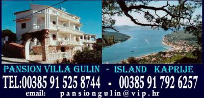 - Su una bella isola Kaprije vicino Sebenico offriamo eccellente alloggio di Mezza-pensione e alloggio in Appartamenti. Agli ospiti e offerto un ricco menu con piatti locali e internationali e specialita,si sta preparando piatti a vostra scelta e servita al momento quando si desidere. Prezze per Mezza-pensione alloggio per persona per giorno in euro. *15 e alloggio. *20 e alloggio con prima colazione. *29 e Mezza-pensione(alloggio+colazione+cena,piatti con un menu a scelta. *37 e Pensione completa . Prezze per Appartamenti 45-70 e. (abbiamo 3 appartamento) Abbiamo capacita per totale 26 persona. Qui e ideale per famiglie e gruppi di affitare un intero piano o tutta la casa . Abbiamo la spiaggia privata vicino 50 metri. Abbiamo parcheggio privato in Sebenico. Kaprije isola e collegato con la citta di Sebenico con linee di traghetto otto volte al giorno in entramble direzioni. 00385 91 5258744/fiso:00385 22 449748 sito: kaprije.hr