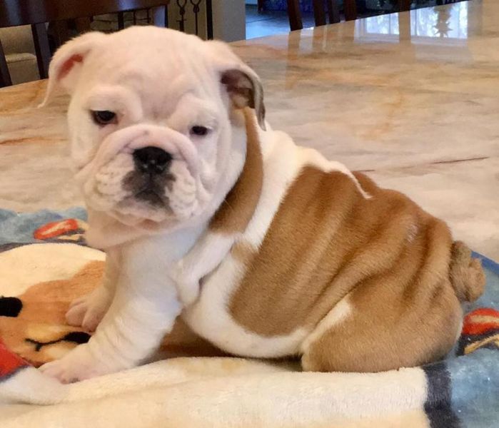 • Super adorabili cuccioli di Bulldog inglese. Così gentile e affettuoso. Ho lasciato un maschio e una femmina da una cucciolata di 4. Questa è una grande razza per famiglie con bambini.