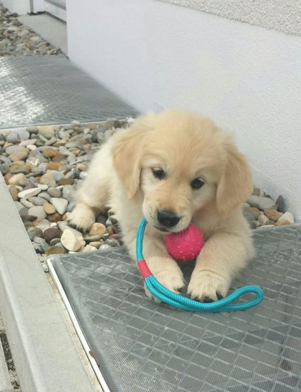 • Cuccioli di golden retriever ( per regalo ) Adorabili cuccioli di Golden retriver femminucce e maschietti disponibili per l'adozione gratuita i cuccioli sono vaccinati sverminati cippati accompagnati da libretto sanitario e garanzia scritta. Di seguito sono riportati i dettagli del mio cane Età: 12 settimane Razza: Golden retriver Sesso: 1 maschio e 2 femmine Vi prego di contattarmi per ulteriori informazioni e adozione contatarci con vostra indirizzo email.
