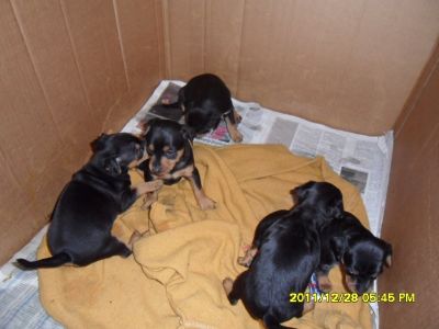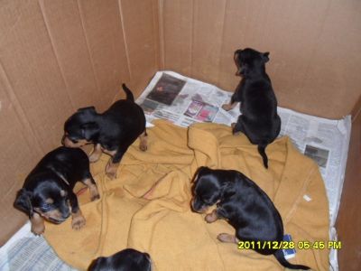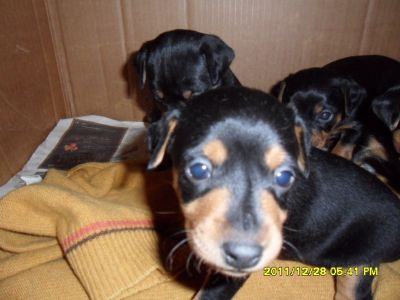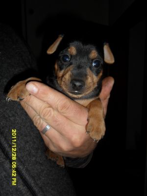 • Vendo o baratto cuccioli di pincher nano di piccola taglia neri focati a veri amanti animali, 3 maschi e 2 femmine,sani e belli, genitori visibili, prezzo trattabile,se interessati chiamare il 3394723905, grazie.