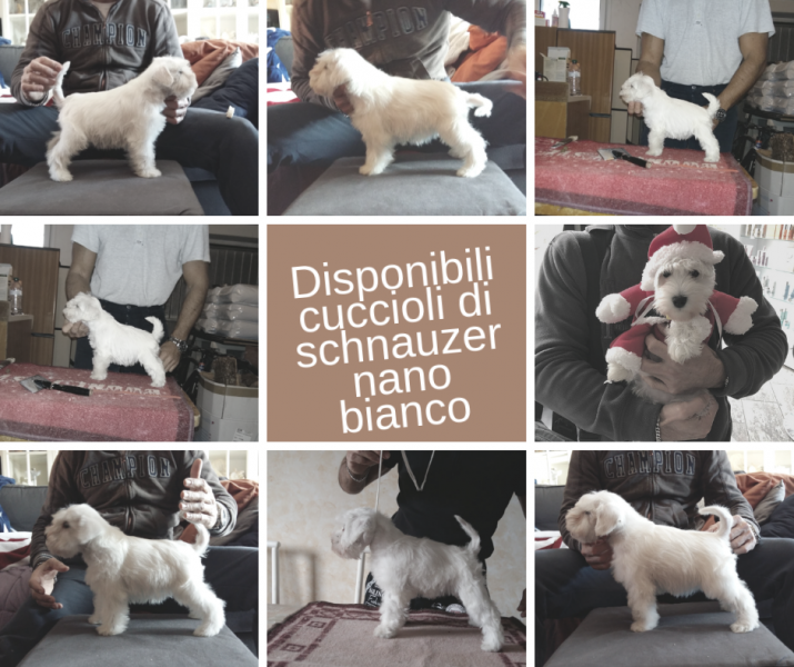 - Disponibili ultimi cuccioli schnauzer nano bianco. Vaccinati sverminati dotati di microchip e pedigree. Nati e cresciuti in casa ottimo carattere. info@tempioantico.it 3387146376