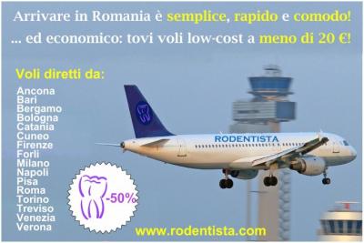- Hai problemi con i denti? Abiti vicino ad un aeroporto? Per le tue cure dentali ti conviene venire in Romania! Per esempio trovi volo per Bucarest anche con meno di 20 Euro, e se paghi di più ti rimborsiamo le spese. DA NOI TROVI CONVENIENZA PER LE CURE DENTALI: 1. prezzi da 40 a 60% in meno rispetto alla media dei prezzi in Italia 2. risparmi tempo 3. risultati ottimi e garantiti Contattaci tramite: [URL]http://www.rodentista.com[/URL] Contattaci tramite: http://www.rodentista.com Contattaci tramite: www.rodentista.com
