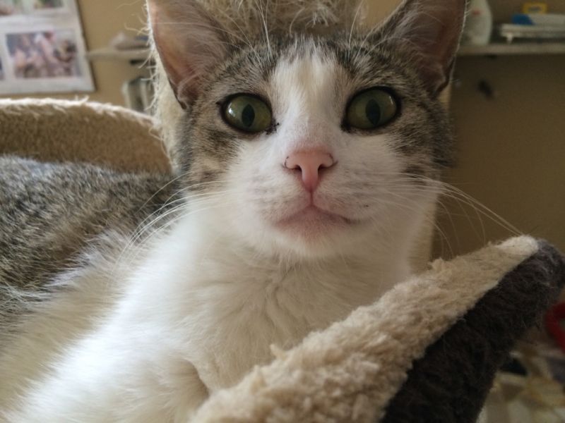 Dolcissima gatta bianca e grigia