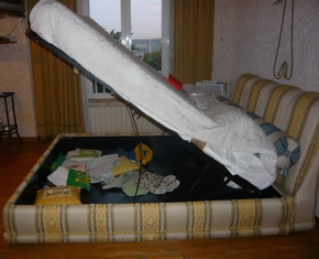 • elegante letto matrimoniale in seta con spalliera imbottita e contenitore apribile,compreso nel prezzo materasso in lattice,privato vende causa trasferimento,come nuovo vero affare