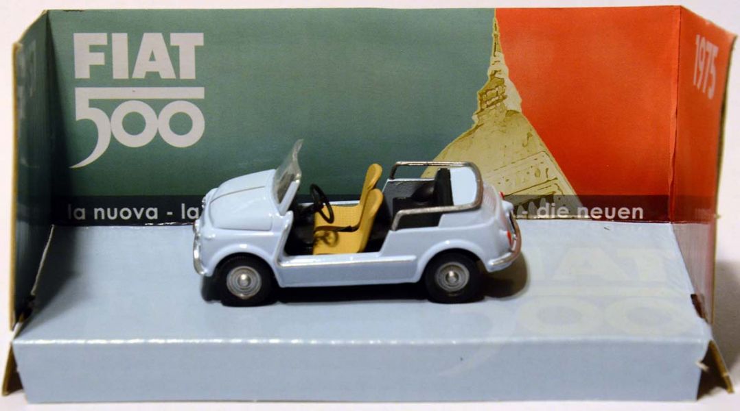 - FIAT 500 Jolly Azzurra e Giardiniera, modellini in scala 1:43, prodotti da Mondo Motors; nuovi, con scatola, perfetti, in vendita a 4 € cad., più spese di spedizione.