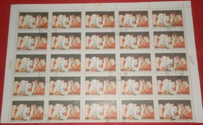 - N° 4 fogli per 15 francobolli emessi dalla Mongolia rappresentanti artisti Italiani. Bellini Transfigurazione,Lavergine Giovanni Battista e donna,Mantegna San Giorgio.€ 6