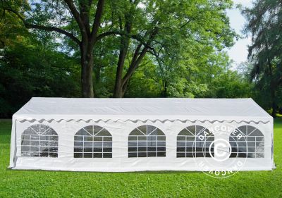 - Gazebo party di qualità in telo PVC pesante con telaio galvanizzato. Fatti di prodotto - Gazebo party popolare 5 x 10 m PVC - Ideale per 50-55 persone circa - Tubo d'acciaio galvanizzato 42 mm x 1,2 mm / 38 mm x 1,1 mm - Telo del tetto in PVC impermeabile. antifiamme 500 gr./m² - Pezzi lateriali in PVC impermeabile, antifiamme 380 gr./m² - Finestre in tutti e due i lati lunghi per una buona entrata di luce - Entrata nella parte timpano - Altezza laterale: 2 m - Altezza d'inclinazione: 2,75 m - Termine di consegna: 3-5 giorni lavorativi