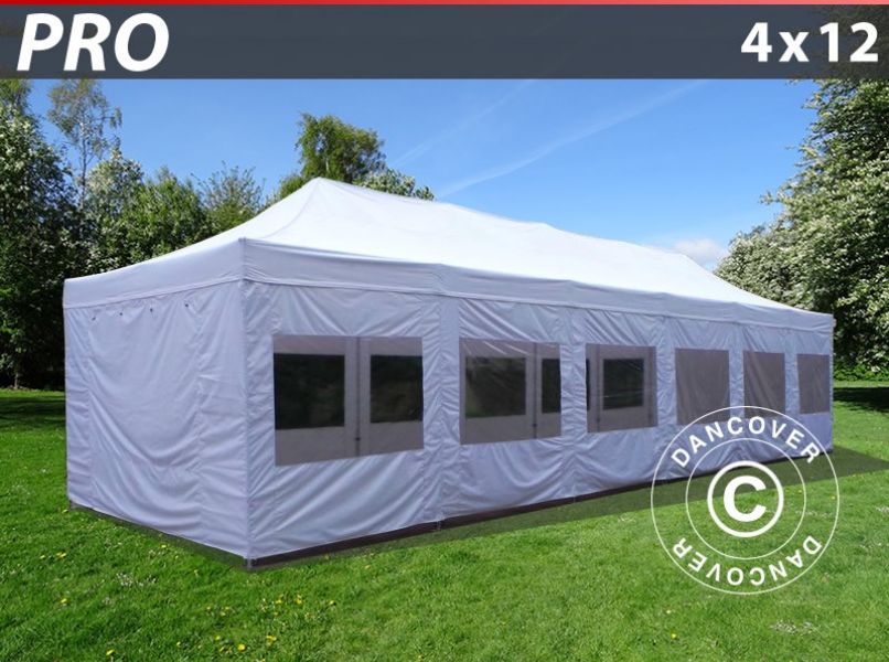 Gazebo pieghevole FleXtents PRO 4x12m Bianco, inclusi fianchi