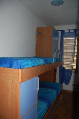 - Confortevole , ben arredato. Max 5 persone . Composto da Cucina–Soggiorno, Cameretta, Camera Matrimoniale, Bagno,Veranda–ingresso, 1 posto auto. Cucina componibile di colore azzurro o verde, frigo-freezer, forno elettrico e microonde,alimentazione fornelli a gas. In cucina TV- SAT, poltrona letto e tavolo con 4 sedie. La cucina è attrezzata con pentole in acciaio inox, pentola a pressione e stoviglie varie per 12 coperti. Stendibiancheria, Asse e ferro da stiro. La cameretta è di colore azzurro e legno con sistema a ponte e letto a castello. La camera matrimoniale è completa con armadio 4 stagioni. Possibilità di fornire lettini (culle ) per piccoli ospiti. In bagno box- doccia, lavatrice e scaldacqua elettrico. La veranda ingresso è attrezzata con tavolino, 4 poltroncine e ombrellone. I consumi di ENEL, Gas e Acqua sono compresi nel prezzo