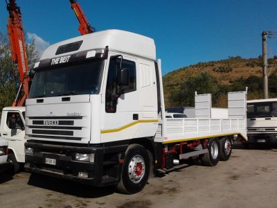 - IVECO EUROSTAR 240E47 ANNO:1996 COLORE:BIANCO CARATTERISTICHE:IN ALLESTIMENTO CON CASSONE CON RAMPE IDRAULICHE MT 7.50 PER MT 2.55 SPONDE ALTEZZA 40 CM MACCHINA PERFETTAMENTE IN ORDINE PREZZO:DOPO VISIONE