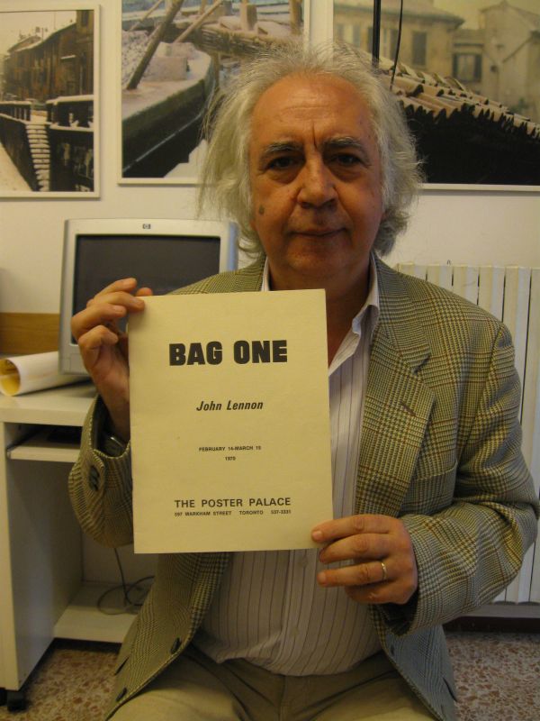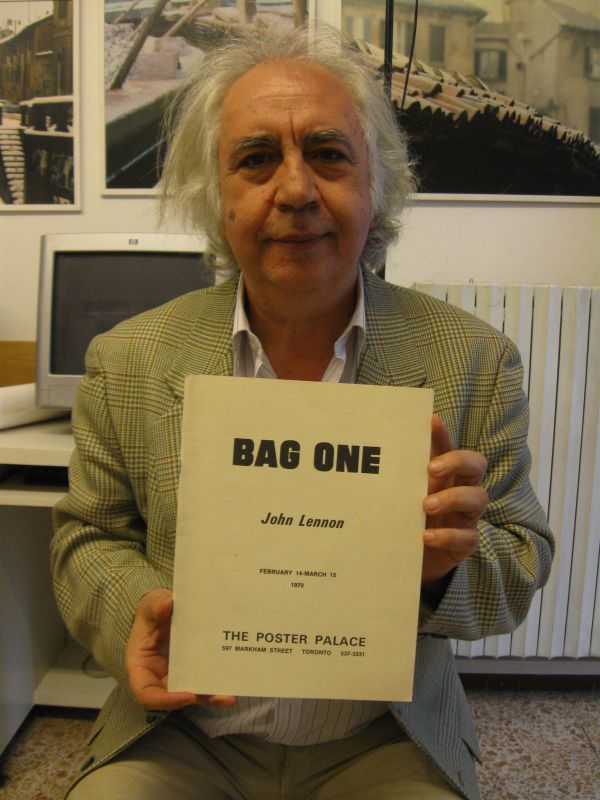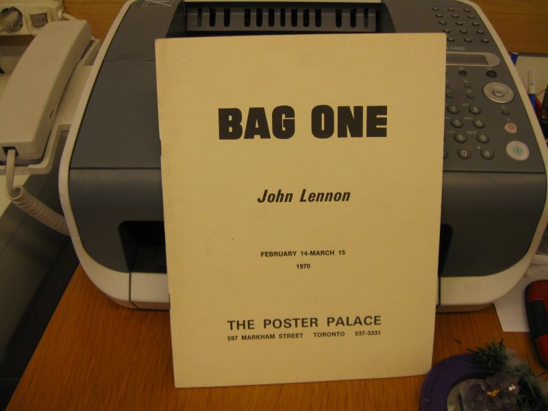 - John Lennon 'Bag One' rarissimo catalogo. JOHN LENNON 'BAG ONE', il catalogo della sua mostra realizzata a Toronto (Canada) dal 14 febbraio 1970 al 15 marzo 1970. Il catalogo, è un cataologo del tutto rarissimo e per un vero collezionista di John Lennon e dei Beatles, consta di 16 pagine ed è in perfette condizioni senza segni o sbavature. L'esposizione di questi disegni di John Lennon fu bloccata a Londra: 8 grafiche furono ritenute oscene e la mostra stessa venne bloccata. Il mercato dei disegni e delle grafiche di John Lennon, od attribuite a lui, è a dir poco miliardario in dollari. La vedova Yoko Ono viene criticata, ma noi non siamo d'accordo. Tutta l'opera di John Lennon, anche quella grafica, è di grandissimo interesse culturale. John Lennon è l'artista più venduto al mondo, le quotazioni dei suoi multipli si aggirano a dai 2000 dollari ai 10.000 dollari, ed i prezzi sono in continua ascesa. John Lennon è quindi il più grande artista e musicista!!!