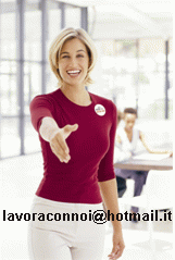 - Stiamo ricercando e selezionando collaboratori per la distribuzione e fidelizzazione clientela di prodotti orientati al benessere della persona. - Serietà nel lavoro, disponibilità a collaborare con altre persone. No richiesta esperienza, anche primo impiego, Inviare il proprio Curriculum Vitae e Per info Tel.3488054592 E-mail lavoraconnoi@hotmail.it -formazione qualificata aziendale e periodo d’affiancamento, possibilità di carriera, guadagni rapportati al proprio impegno e ben remunerati. Per maggiori informazioni contattare orario ufficio Per info Tel.3488054592 E-mail lavoraconnoi@hotmail.it