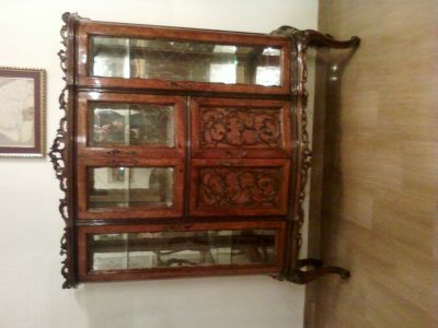 Graziosissima petineuse del 900 in stile Liberty, specchiera a tre ante richiudibili,...