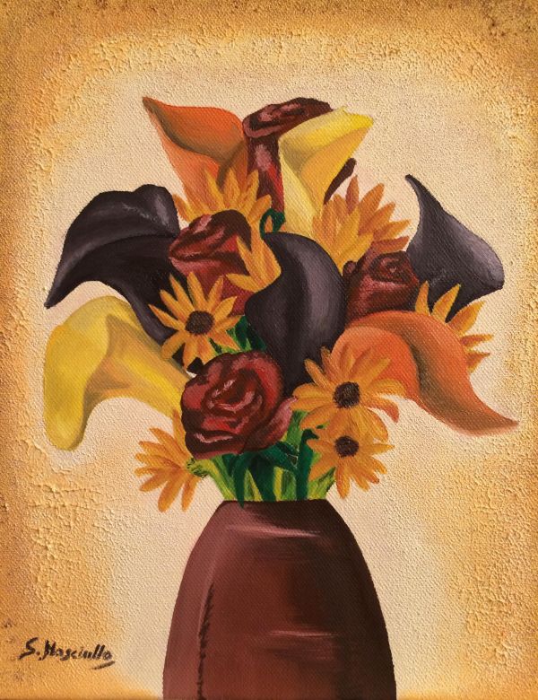 - 'Natura morta con fiori', olio su tela 25X30 cm, anno 2013, riproduzione dal vero.