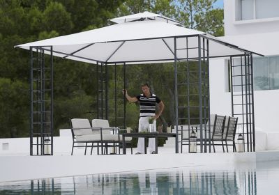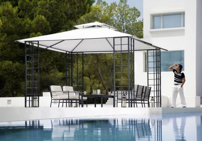 - Prezzo Iva inclusa : EUR 2.346,61 Padiglione Toscana 4 x 4 m. Un bello padiglione per il giardino. Fatti di prodotto - 4 (larg) x 4 (lung) x 2,9(alte) m - Telaio fatto di alluminio - Copertura fatta del acryl da Dickson Constant - I connettori trasversali sono inclusi nella consegna. - Esente dai popolare: i puntoni del tetto possono essere estesi sempre in modo da i resti del panno rimangono allungati correttamente - Offriamo una garanzia per cinque anni per la copertura materiale e 10 anni per i recinti del traliccio e dell'asta - Consegna: 3 - 4 settimane