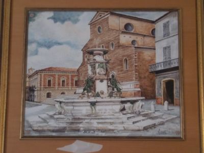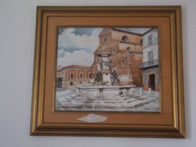 • Grande QUADRO in CERAMICA raffigurante piazza del duomo di Faenza con fontana in primo piano, fimata Giorgi, con bella cornice. Foto disponibili