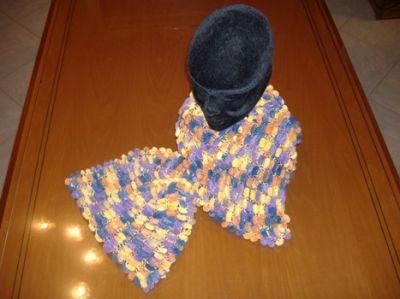 REALIZZO TOTALMENTE A MANO IN PURA LANA LAVORI DI SCIARPE, SCALDACOLLI CAPPELLI ETC