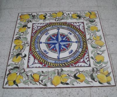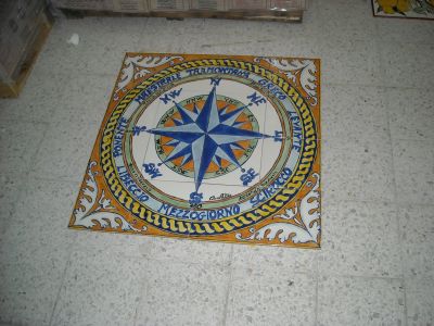 - Pannello di mattonelle raffigurante la rosa dei venti in ceramica DECORATA A MANO Il pannello è formato da: 16 mattonelle 20x20cm e misura: cm80 di lunghezza cm 80 di altezza cm 0,9 circa di spessore per ogni mattonella colori: Come da foto si può avere con limoni 25 mattonelle 20x20cm e misura: cm100 di lunghezza cm 100 di altezza cm 0,9 circa di spessore per ogni mattonella colori: Come da foto Adatti tanto per esterni quanto per interni Il pannello in inserzione, su richiesta viene eseguito in diversi formati, può anche essere posizionato in relativa struttura per tavolo in ferro battuto (essendo artigiani produciamo tavoli in ogni misura vogliate e sedie d'abbinare). Possiamo personalizzare l'oggetto, con vostri scritti o dediche. Piccole imperfezioni sono a garanzia di lavorazione artigianale, da considerarsi pregio e non difetto