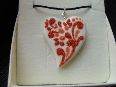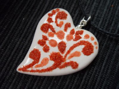 - Ciondolo cuoricino in fine ceramica bianca, impreziosito da inserti in corallo naturale. Fornito di cordino e scatolina regalo. Prodotto artigianale realizzato a mano. Clicca sul link per procedere con l'acquisto.
