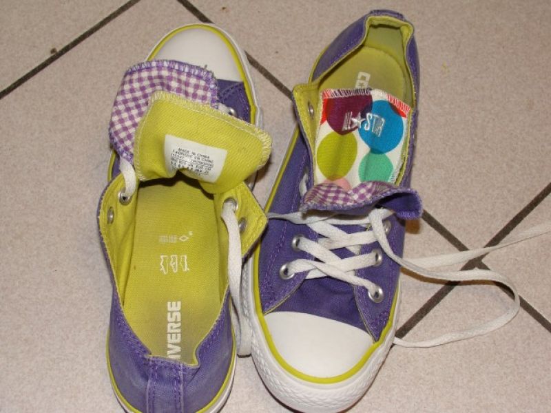 Scarpe Converse All Star unisex viola e verdi, originali, tg. 39,5
