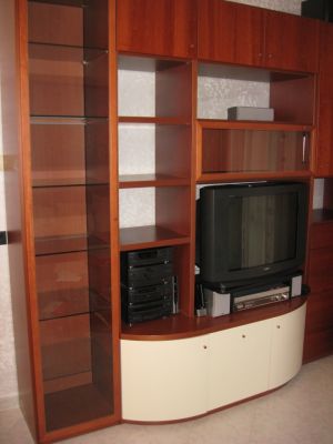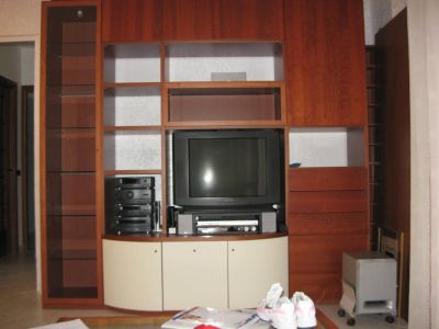 - Arredamento soggiorno completo DOIMO (ottime condizioni vendo causa trasloco) in legno ciliegio / panna composto da parete L290 H230 con spalle portanti completa di colonna con anta in cristallo L45, con vetrinetta bar con anta in cristallo con base a penisola stondata a 3 ante color panna e capiente modulo con 4 cassetti e anta L60; base con 2 ante e 2 cassetti col. panna L134x35; tavolino rettangolare coordinato con piano in cristallo 60x110 vendo a 600 euro