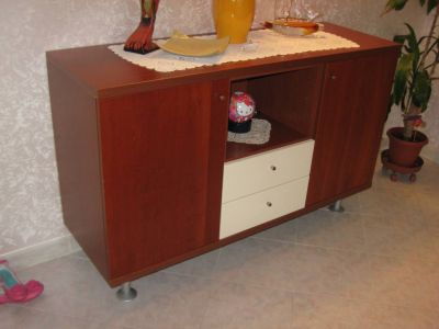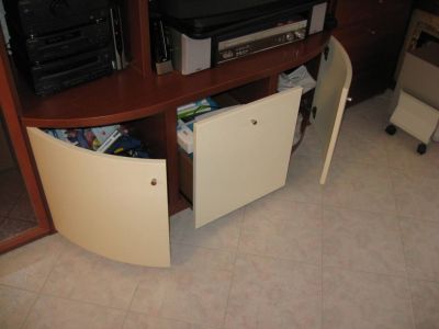 - Arredamento soggiorno completo DOIMO (ottime condizioni vendo causa trasloco) in legno ciliegio / panna composto da parete L290 H230 con spalle portanti completa di colonna con anta in cristallo L45, con vetrinetta bar con anta in cristallo con base a penisola stondata a 3 ante color panna e capiente modulo con 4 cassetti e anta L60; base con 2 ante e 2 cassetti col. panna L134x35; tavolino rettangolare coordinato con piano in cristallo 60x110 vendo a 700 euro