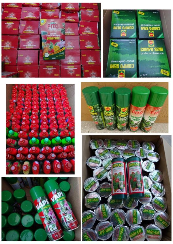 - Nuovo stock disponibile presso i nostri magazzini: concimi e articoli per il giardinaggio: concimi, semi per orto, insetticida, semi, ricostituenti, diserbanti e tanto altro…. Totale 24.718 pezzi Per info e trattative prezzo contattare il sig. Bobbi Luca +39 3288535881 o uff. +39 0744 800948