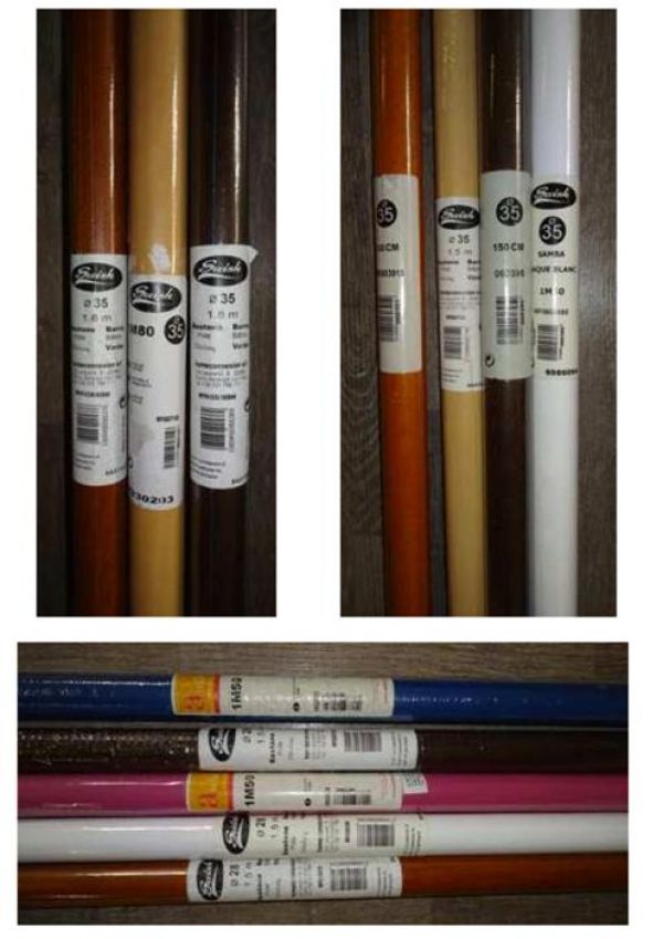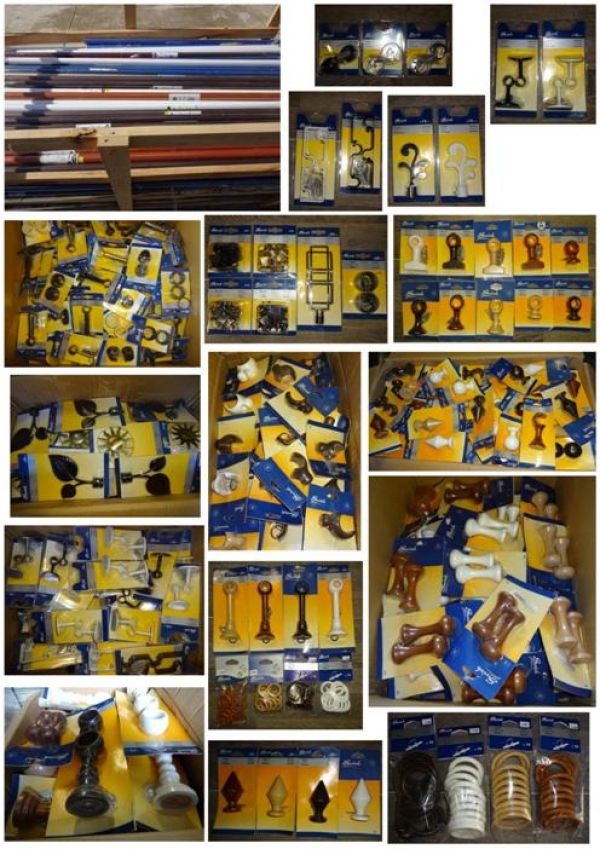 - Stock di bastoni completi in kit; tende in kit a pacchetto, a rullo, veneziane complete di sistema di montaggio modelli misti in misure e colori; bastoni e accessori per tende misti in legno e metallo: tubi, finali, supporti, anelli, pomoli, ganci ferma tende, ecc. totale: 19.000 pezzi assortiti in modelli, colori e misure per info su prezzo ed altro contattare: BOBBI LUCA 328 8535881 o 0744 800948